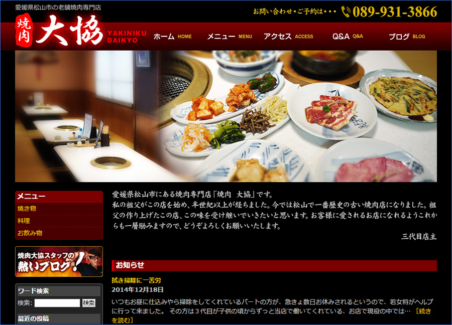 松山市にある老舗の焼肉専門店「焼肉大協」様のホームページがオープンしました。